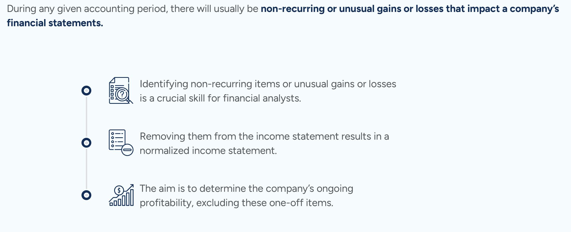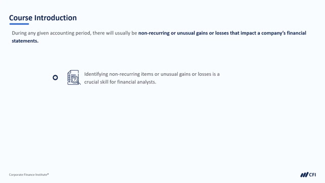 Unexpected, non-recurring items are bound to happen to any company. These can dramatically impact a company’s financial statements, skewing the underlying operating performance. Therefore, financial analysts need to be able to identify and adjust for these one-time items to better understand a company’s true performance. This course is perfect for anyone who uses and analyzes financial statements, including investment bankers, equity research analysts, and financial planning and analysis (FP&A) professionals.