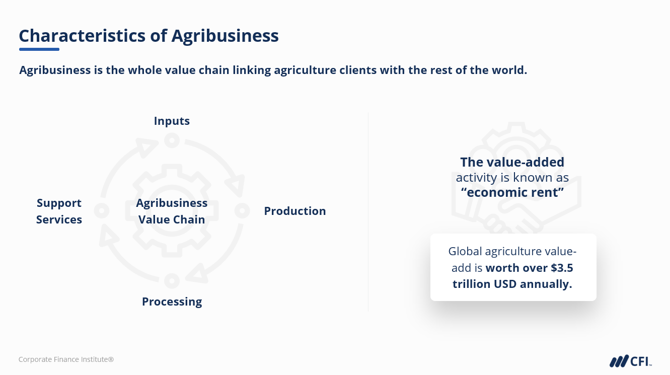 This Introduction to Agribusiness course highlights the characteristics of the agribusiness value chain, its components, and typical sub-sectors. We will identify common production systems and its operations, along with the risks producers and lenders face and also the opportunities to structure financing.