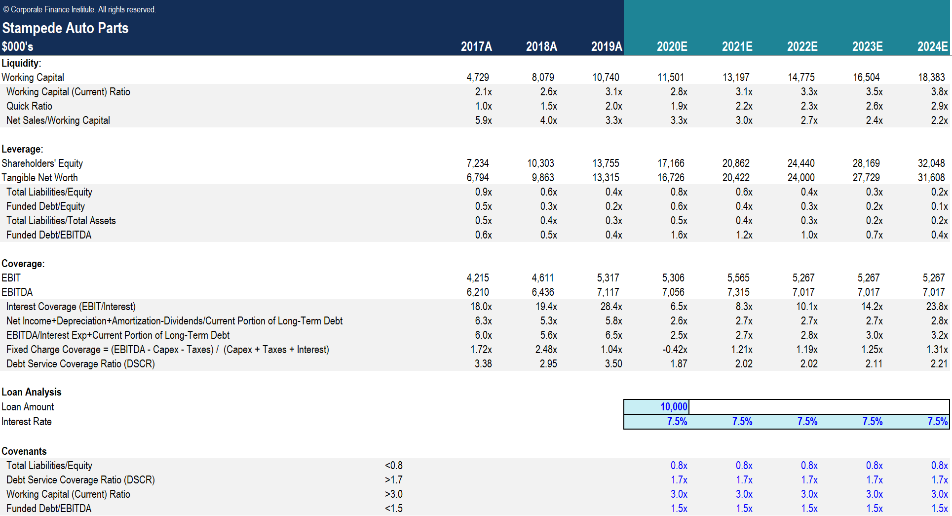 Finally, we will complete a case study where you need to build a covenant model in Excel. We will calculate a company’s key credit metrics based on the historical and forecast financial statements. We will compare these metrics to the covenants that are set for this business and are suitable for the loan.