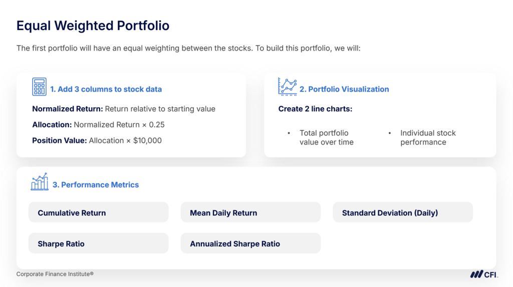 Analyze historical stock data to calculate portfolio returns and key performance metrics like the Sharpe ratio
