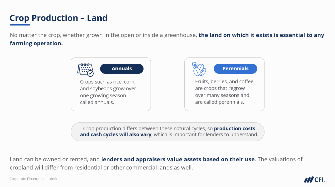 By the end of this course, you will have a better understanding of the agribusiness value chain, and specific crop and livestock operations such as beef cattle, pork, poultry, egg, and dairy production systems, to name a few. You will be able to classify sub-sectors and consider their operating cycles and risks. Recognizing financing opportunities and some structuring considerations will help any lenders who wish to expand their agricultural knowledge in this course and beyond.