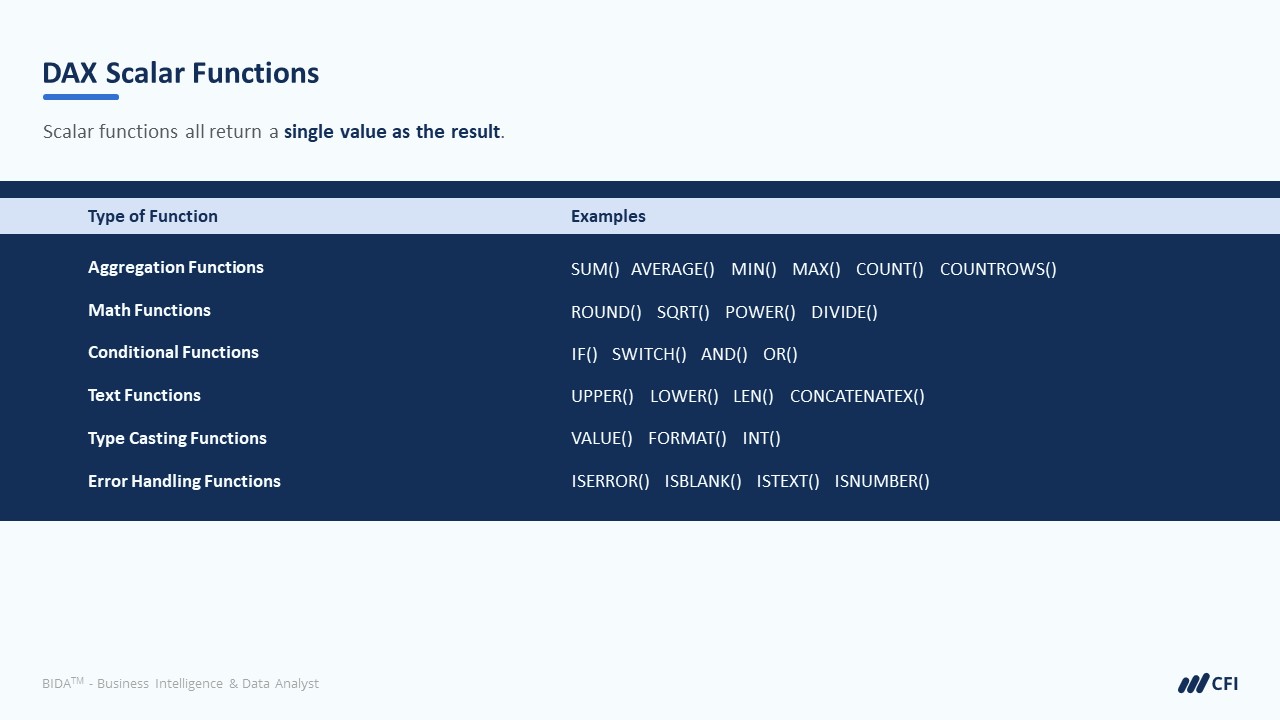 DAX Scalar Functions