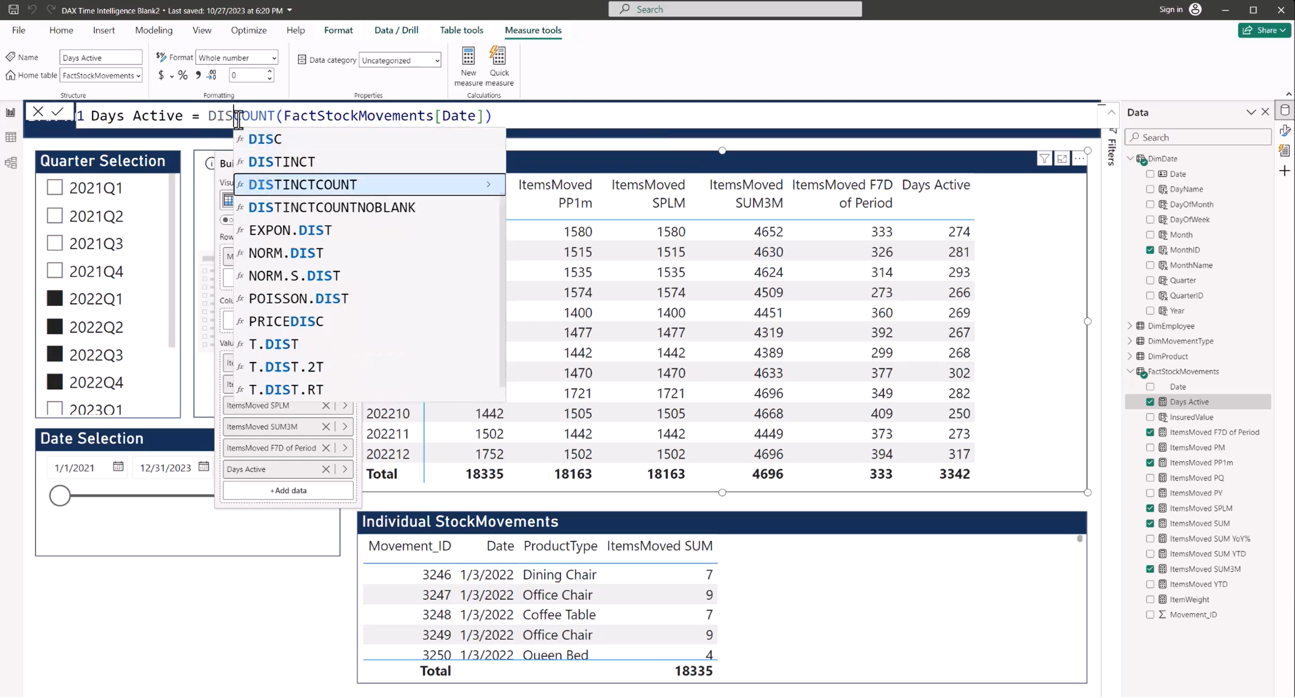 DAX and Time Intelligence Data