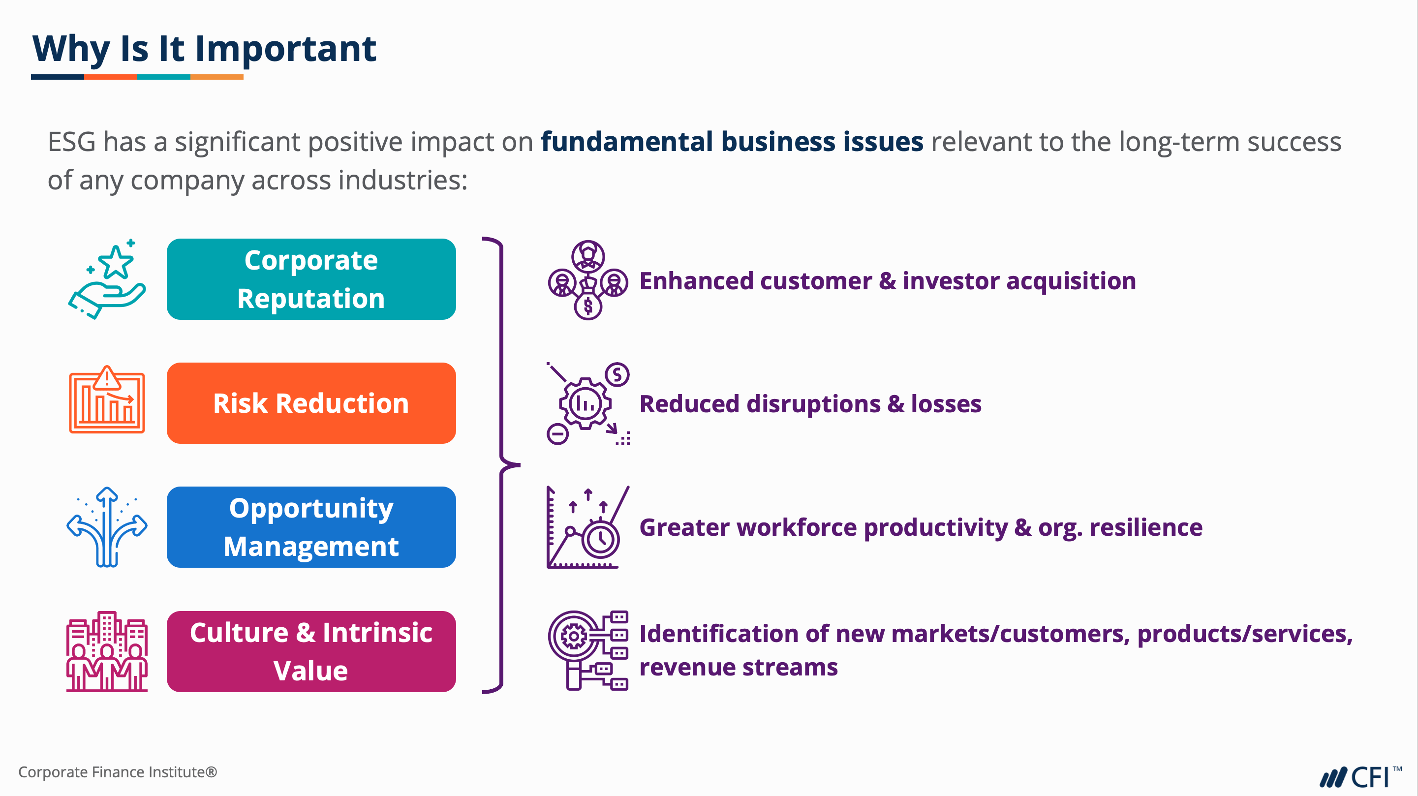 This Environmental Social Governance (ESG) course is perfect for any analyst who would like to better understand how a company manages risks and opportunities that shifting market & non-market conditions create in today’s world.